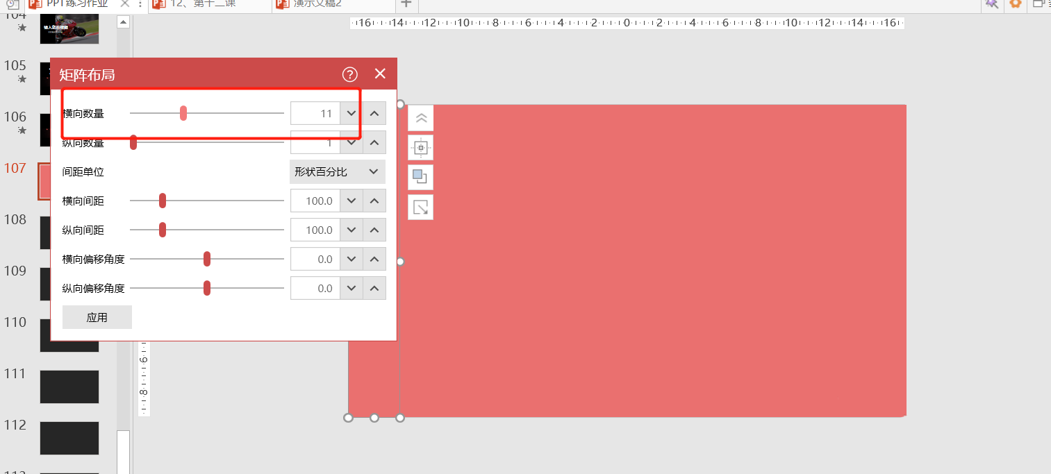 3、拖动【横向数量】,直到矩形布满整个PPT页面,如图3