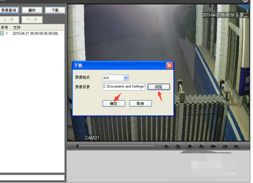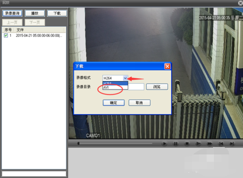 那就选中之后点击下载,然后提示录相格式,这里选择AVI,因为H264一般的播放器播放不了,顺便选择一下要保存的文件夹。