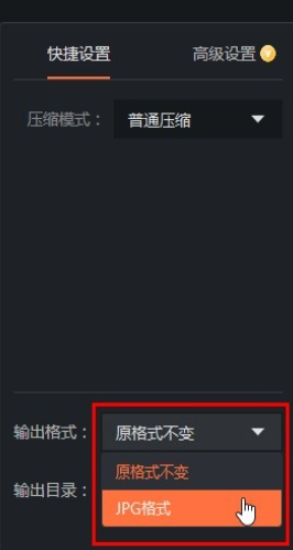 4、点击设置好压缩模式之后,然后找到输出格式这个选项,可以选择压缩之后的输出保存格式,如下图中所示。