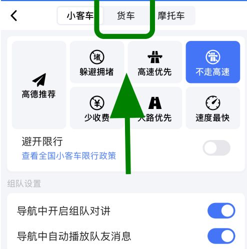 5、进入导航设置,点击顶部的【货车】;