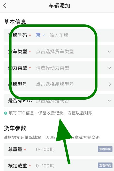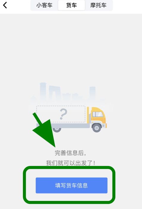 6、跳转添加货车信息页面,点击【填写货车信息】;