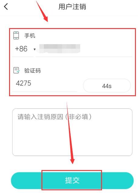 然后在注销界面进行验证该账号,点击提交确认注销即可