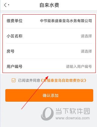 4、输入小区名称、房号、用户编号然后添加即可缴纳水费了。
