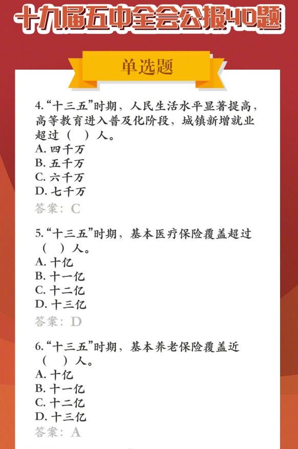 时间:2026-02-25 | 作者: | 阅读:011月16日21:00开启的首场直播答题活动,题目将全部出自五中全会公报,直播将通过选择题形式,以新颖有趣的方式,帮助大众深入学习领会五中全会精神,以及全会提出的一系列新的重要思想、重要论断、重大举措。