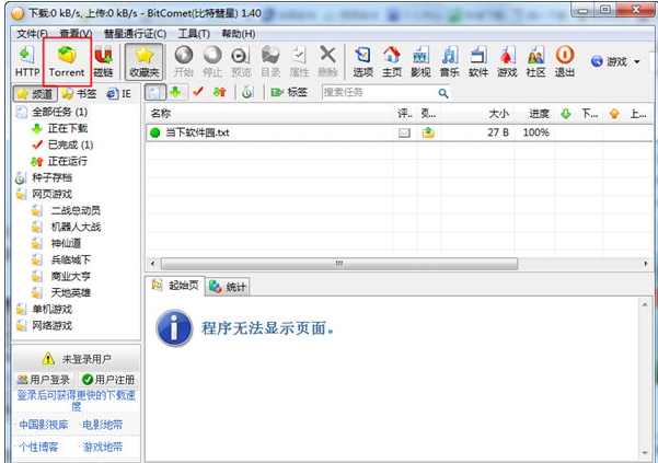 1.将电脑里的种子文件(.torrent)文件拖到软件窗口或者点击左上角的Torrent按钮,然后选择要下载的种子文件即可。