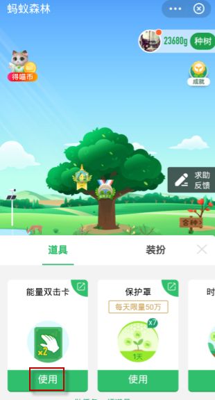 以上就是关于蚂蚁森林双击卡怎么使用的方法介绍,其实很简单的,大家如果使用双击卡去收取能量球可以获取更多的能量,如果有双击卡的赶紧使用起来吧。