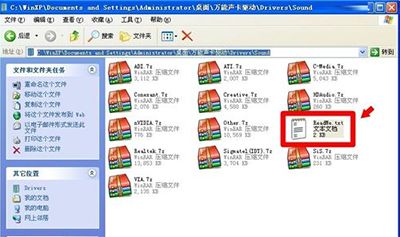 声卡驱动程序在安装包的路径是:万能声卡驱动DriversSound文件夹中都是各个型号的声卡驱动程序。