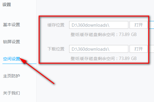 4、在设置中查看空间设置,可以看到默认的缓存和下载的位置。