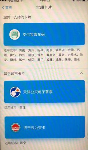 3、选择所在的城市的公交卡;