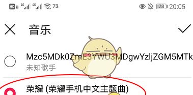 9、在相应的音乐列表中,我们需要选取我们喜欢的铃声点击选中,再点击右上角的对号即可。