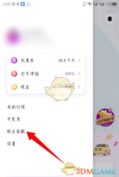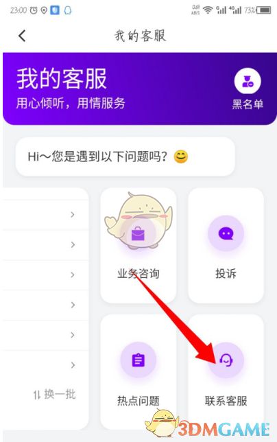2、打开左侧页面后,点击下面的“联系客服”选项。