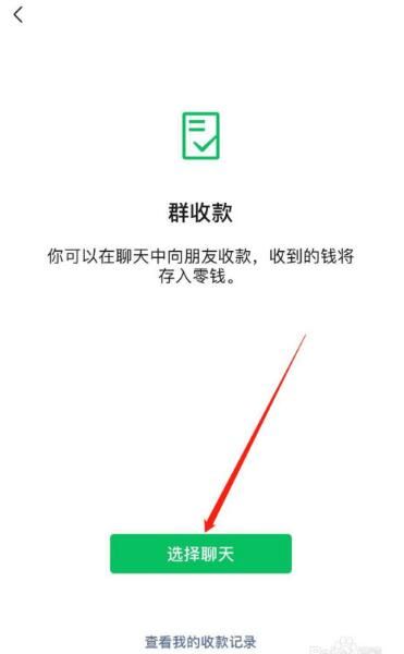 5、然后点击“选择聊天”,选择要收款的微信群。