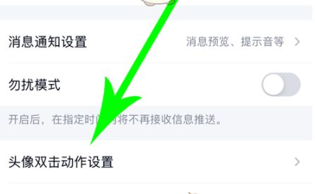 3、打开消息通知界面后,点击“头像双击动作设置”