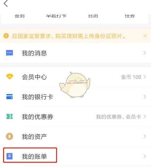2、然后在下面就有一个“我的账单”,点进去就能够看到自己在京东的购物消费了。