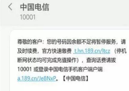 1、手机停机后,你将会收到运营商发送的提示短信“尊敬的客户:您的号码因余额不足将暂停服务,请及时续费,官方快速缴费*********(停机断网状态均可完成充值操作).........”