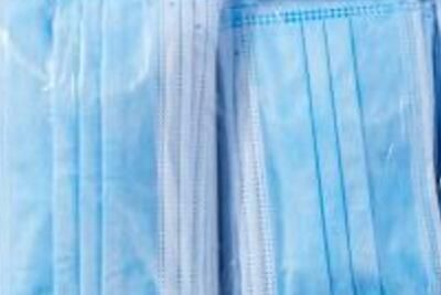 一次性无纺布口罩的材料组件为纺粘无纺布、芯体熔喷无纺布、鼻梁筋、耳挂绳等。
