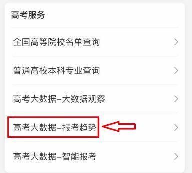 10)然后点击高考大数据-报考趋势