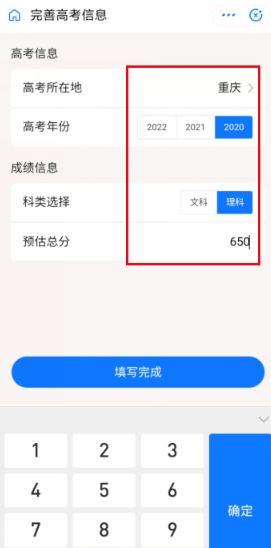 填写好高考的具体信息和分数。