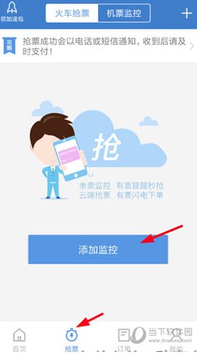 1、若是想要将智行火车票分享到朋友圈,从而获得加速包,那么就应该先点击页面下方的“抢票”选项,在进入抢票页面后选择“添加监控”按钮,登录自己的账号。
