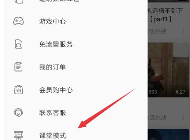 其实人们现在如果想推出课堂模式,那么第一步就得确保自己知道课堂模式的密码,然后从哔哩哔哩首页左上角点击横杠按钮,打开列表翻到下方,选择“课堂模式”功能(如下所示)。