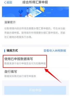 2、接下来推荐大家直接选择其中的“使用已申报数据填写”功能,因为里面已经有税务机关预填了部分数据,不需要大家手动输入。