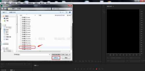 2、在弹出的导入文件窗口中,选择需要的音频素材,点击打开。