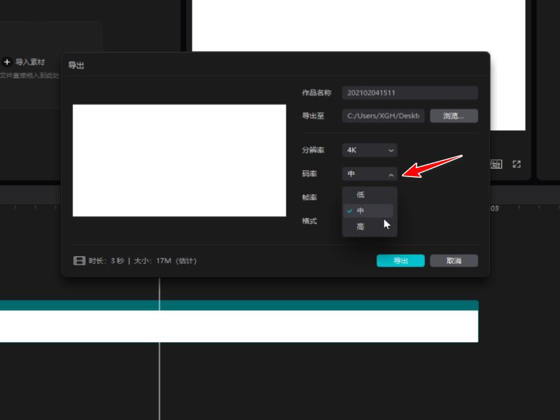 然后在导出界面分辨率选项,选择参数越高,视频越清晰。