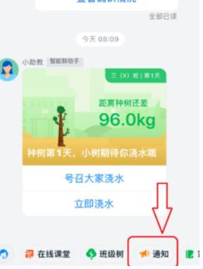 第二步:打开钉钉,进入到班级群,再点击“通知”,如下图所示。
