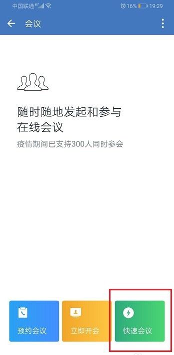 第二步进去会议之后,点击快速会议,选择视频会议,如下图所示: