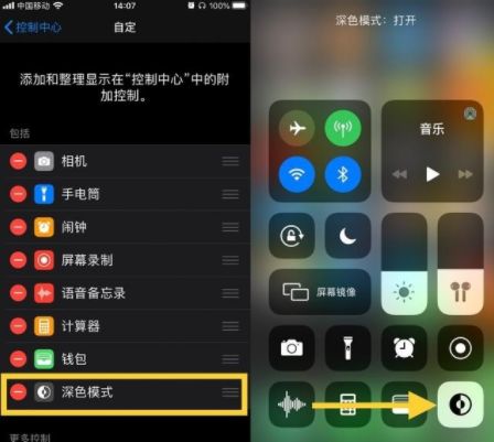 操作方法:设置—控制中心—自定控制—深色模式
