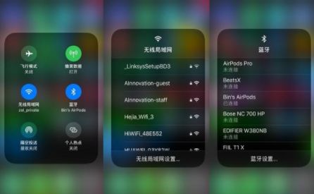 操作方法:屏幕上拉进入控制中心——重按WiFi/蓝牙图标——选择需要连接的WiFi/蓝牙设备