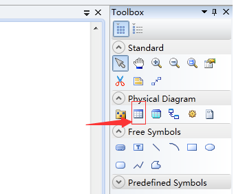我们需要先新建表。鼠标选中右侧“Toolbox”栏中“Table”按钮,然后鼠标移入空白处,点击鼠标完成新建表,如下图所示: