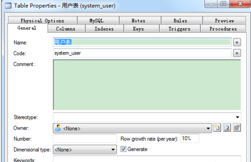 - Power Designer设定一个用户对象的具体方法
