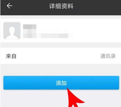 打开被添加好友“详细资料”界面后,点击底部的“添加”按钮