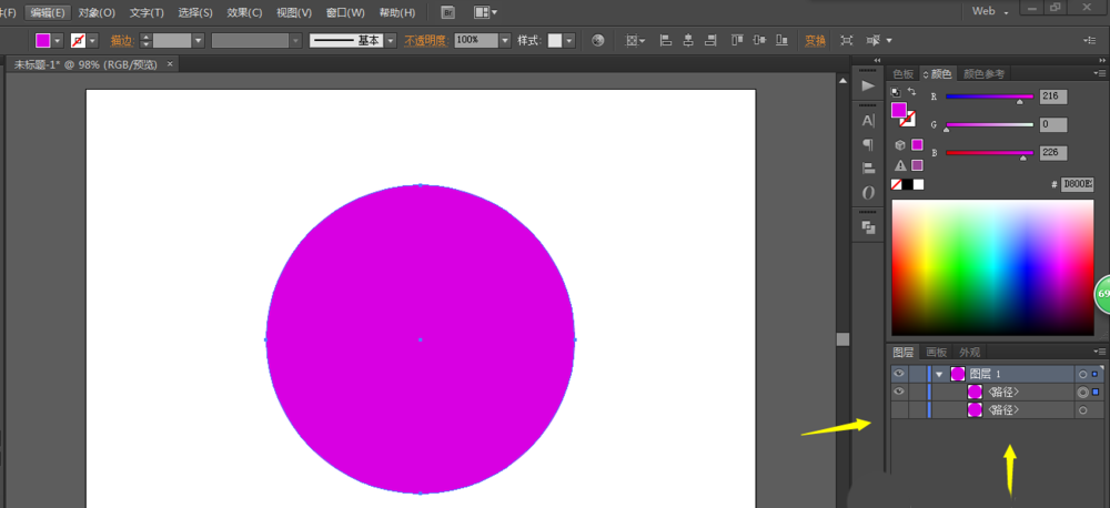 复制一份形状。用剪刀工具减去锚点,使得变成半圆。