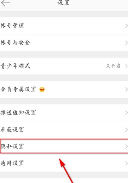 在设置界面点击“隐私设置”