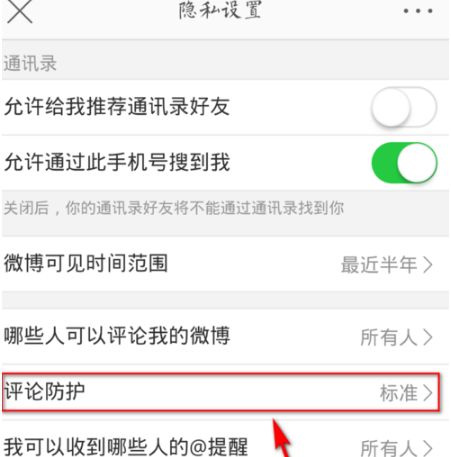 在隐私设置界面点击“评论防护”