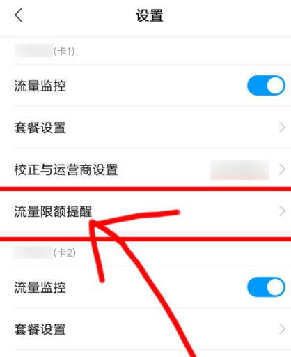 卡1卡2都是可以设置的,点击【流量限速提醒】。