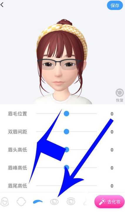3、同时不仅仅是脸型,像眉毛距离、双眉间距、眼睛大小等细节,同样可以一键进行修改调整,通过右上角“保存”按钮进行确认。