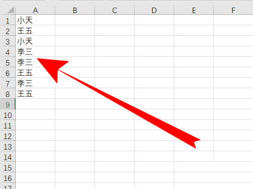 1、如下图所示,电子表格内有很多的重复值。
