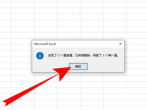 4、页面弹出删除重复值对话框,点击确定。