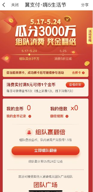 以上就是翼支付嗨5生活节瓜分3000万怎么参加的攻略规则介绍,大家可以了解下,这个活动有很多网友参与进来, 有兴趣的用户可去参加下。