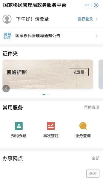 第二步:进入“移民局”小程序(如下图),点击“授权登录”。按照提示进行授权操作。这里需要涮脸验证身份。