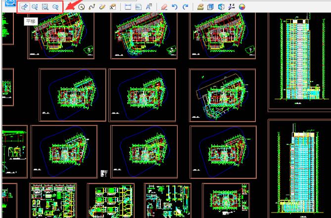 3.将CAD图纸进行打开之后,使用CAD看图软件上方中的平移、适时缩放、窗口放大、返回全图等功能,将CAD图纸移动到适当位置中。