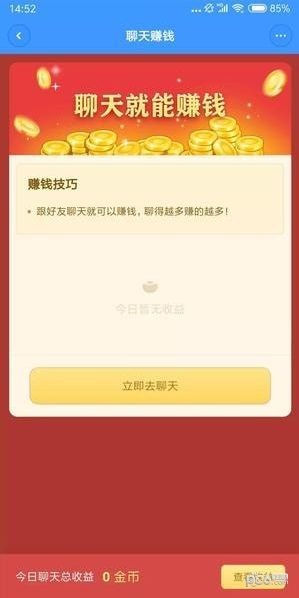 中国移动聊天宝核心业务还是聊天,在主页右上角可以看到一个金币按钮,里面便是与之前完全不同的【聊天赚钱】详情页,跟好友聊天就能赚钱,聊得越多赚的越多。