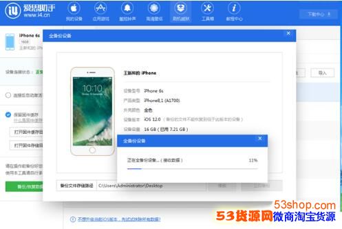 由于从高系统版本降级的低系统版本是不能“保留用户资料涮机”,而且iOS12.1 beta2全备份设备无法恢复到低版本系统中。所以降级前先在“备份/恢复”中分类备份手机内的数据。如果您在升级前已备份资料则无需重新备份。