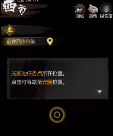 先来说第1个据点,位于(32,7),玩家想获得这个据点需要先完成西市暑里的全部时间,玩家需要先前往(28,18),嗯在这里可以询问一下当下所发生的事件,在询问完成后一定要记得买一份胡饼,接下来就可以向地图的下方移动,成功触发到事件完成战,这场战斗难度系数并不高,在成功解决之后,玩家可以将胡饼送给对方,然后在一项(33,26),向其询问生意状况,继续向前走,就可以拿到一个蓝色荷包,紧接着将荷包捡起进行提交,再回到城镇当中将自己武装齐全,继续前往西市进行调查,抵达(32,7)这个位点进行对话,就可以拿下第一个据点。