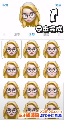 4、剩下的就是自己创建想要的拟我表情,肤色、发型、眼镜等各部位都可以,然后点击完成