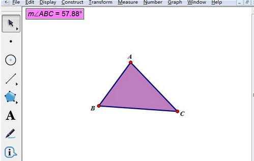 选择左侧侧边栏“移动箭头工具”依次选择三角形的三个顶点,单击上方菜单栏“度量”——“角度”命令,就可以看到一个内角的角度已经出现了。