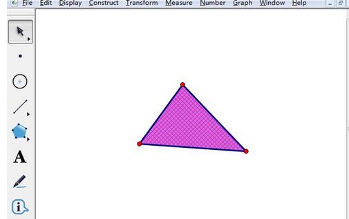 单击左侧侧边栏“移动箭头工具”选中三角形的三个顶点,单击上方菜单栏“构造”——“三角形的内部”命令,就可以看出三角形被涂上了颜色,